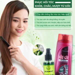 Combo ngăn lão hóa giảm tóc bạc sớm Thorakao được thiết kế dành riêng cho mái tóc đang “kêu cứu” vì bạc sớm, rụng nhiều hoặc hư tổn do hóa chất, mang lại sự chăm sóc toàn diện từ gốc đến ngọn.